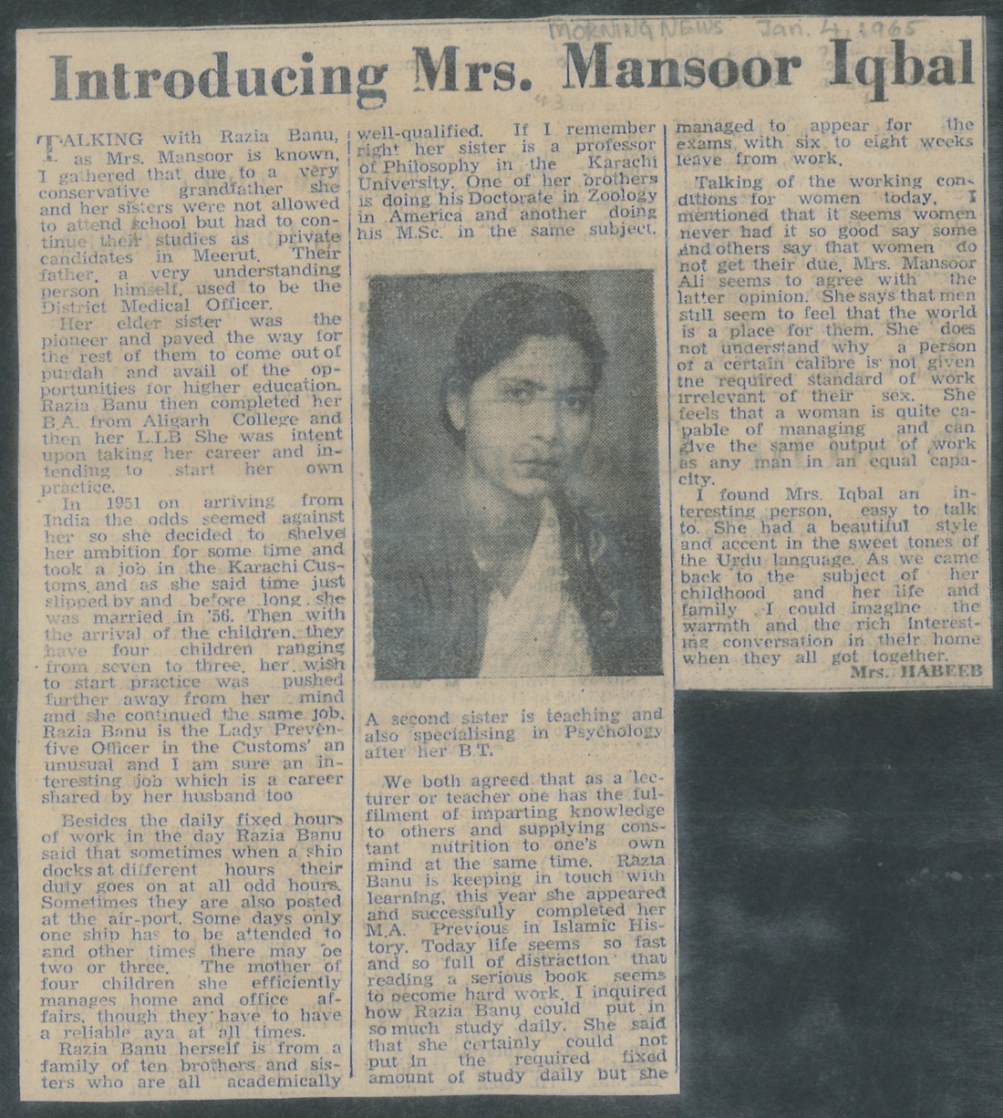 Introducing Mrs. Mansoor Iqbal